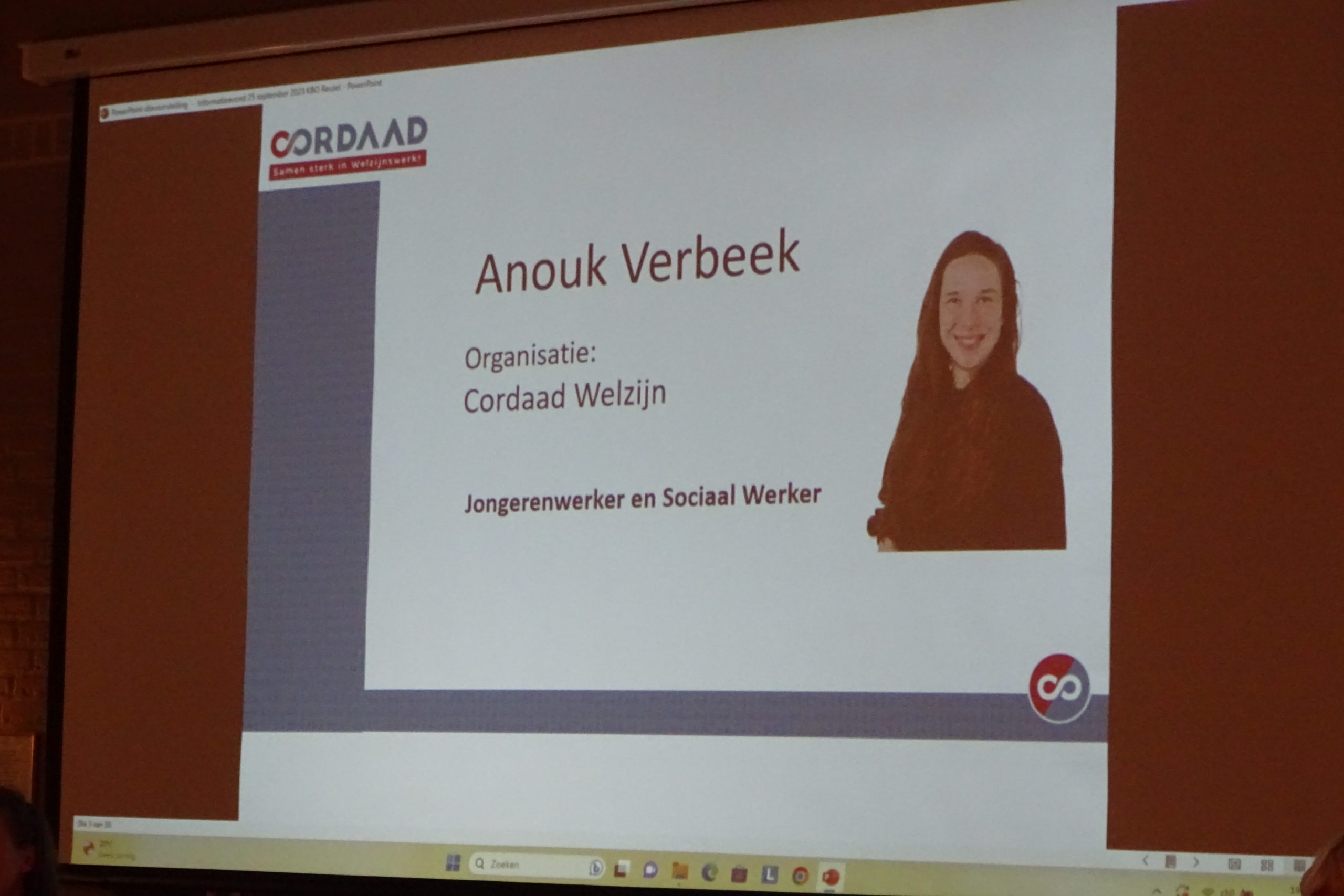 Bij de aanvang van deze avond stelde Anouk Verbeek zich voor als sociaal werker bij Cordaad Welzijn en ging verder in op haar taken. Zoals: