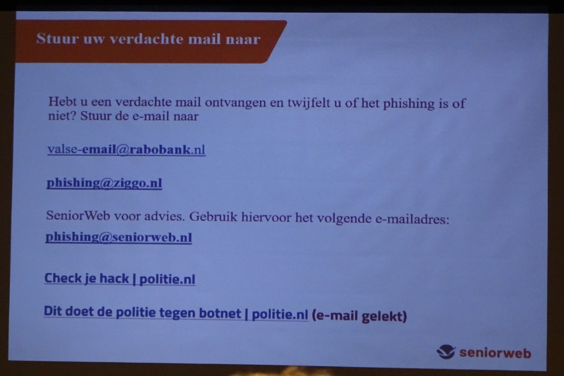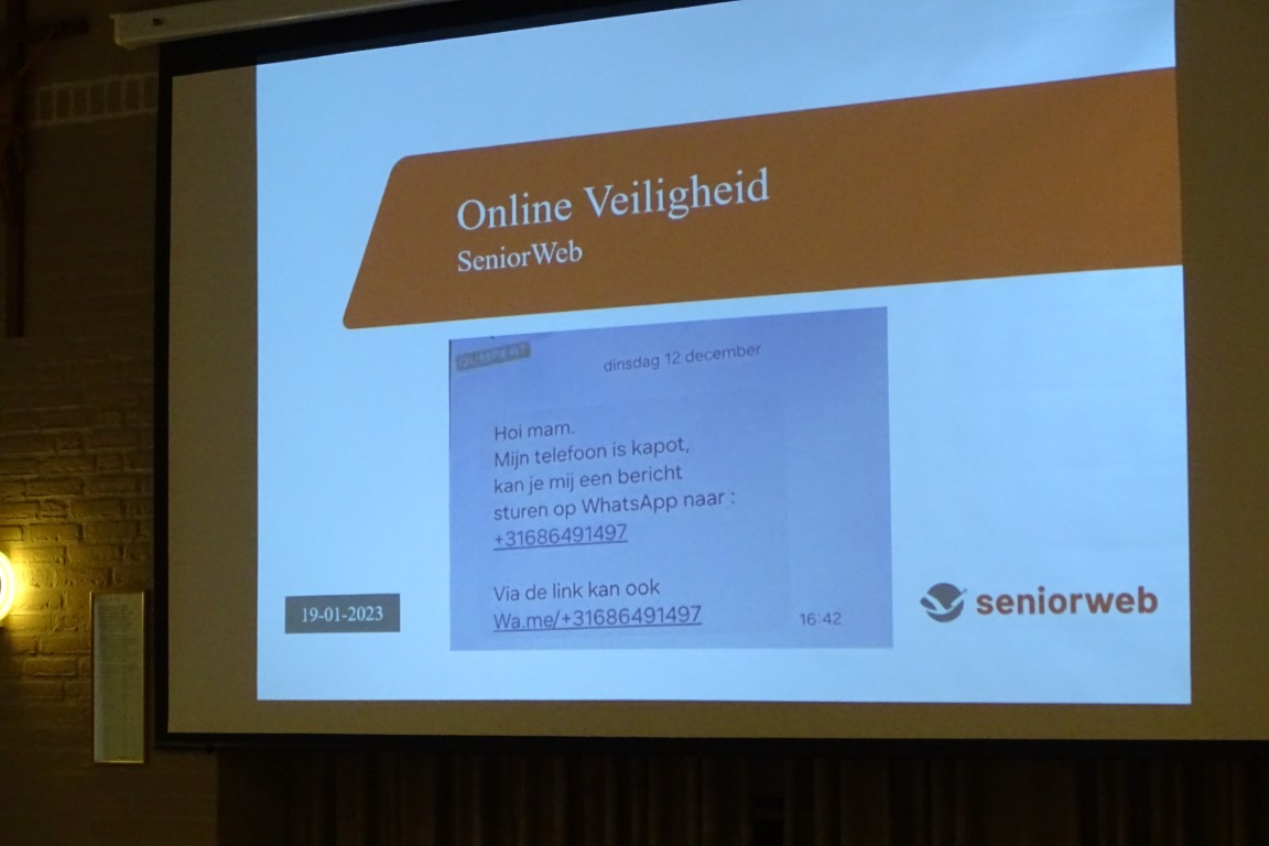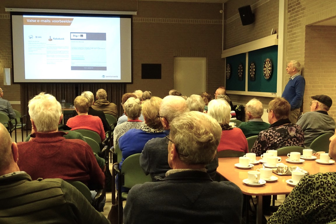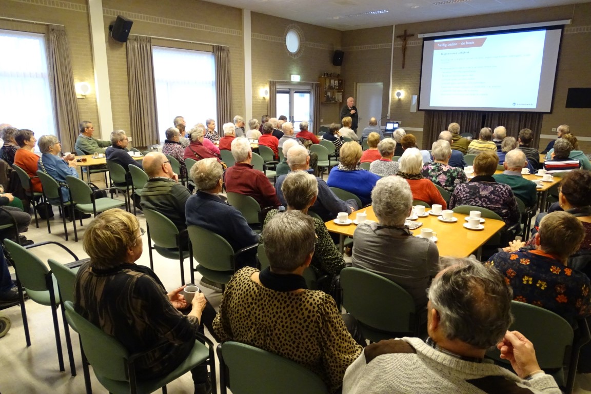 Het was een informatieve middag vol praktische tips om veilig met de computer en telefoon te kunnen werken en u veilig te voelen in uw woonomgeving en met uw dagelijkse bezigheden.