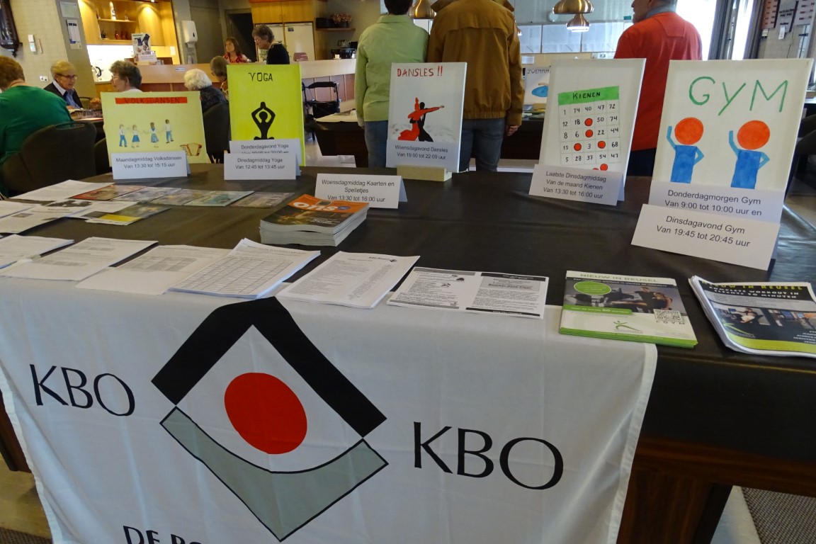 Binnen in het Ontmoetingscentrum was er ook van alles te zien en er kon men informatie inwinnen over de verschillende activiteiten waar een KBO lid zoal aan mee kan doen, zoals b.v. aansluiten bij de fietsers, gym en/of yoga groep.