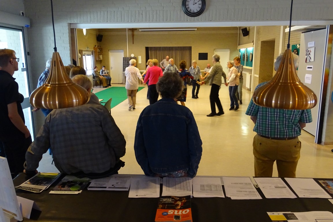 Een enthousiaste volksdans groep gaf een demonstratie van verschillende soorten volksdansen en ook enkele deelnemers van de dansles hebben laten zien hoe mooi ze kunnen dansen, geweldig om dat te zien.