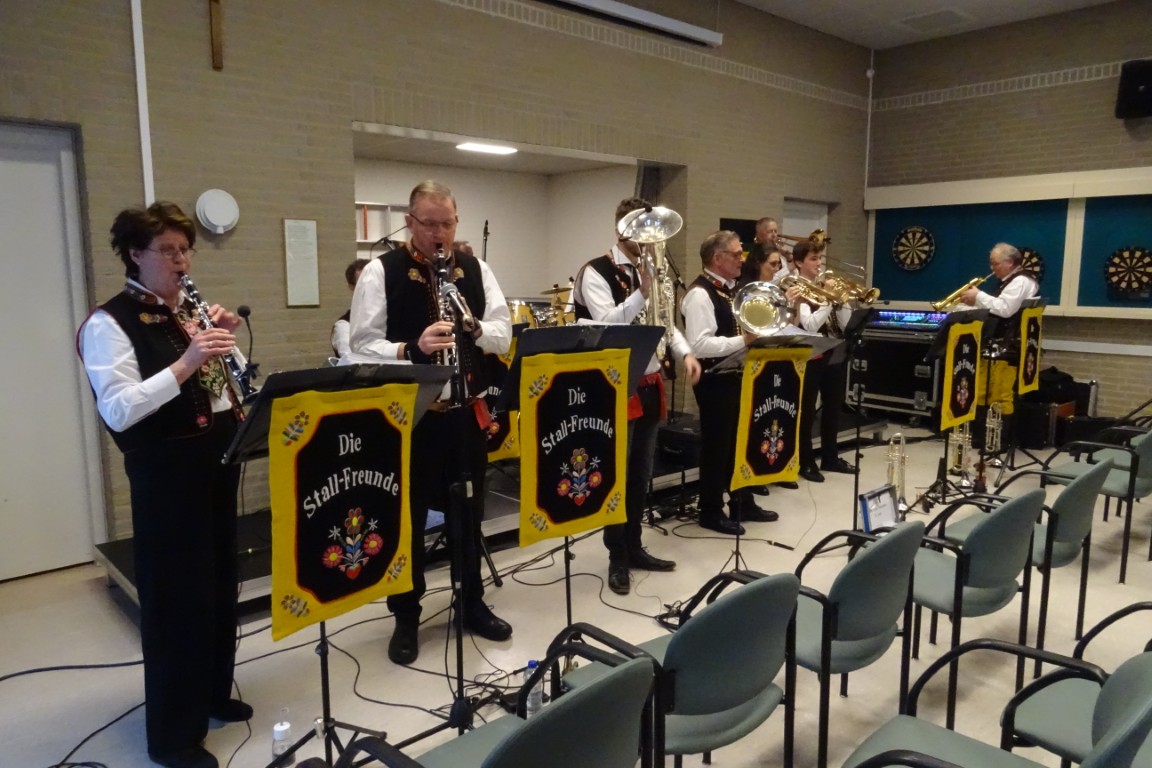 Blaaskapel “Die Stall-Freunde” werd opgericht in 1989 te Wintelre en speelt voornamelijk Tsjechische blaasmuziek, afgewisseld met populaire muziekstukken. Dit optreden was dan ook zeer gevarieerd.