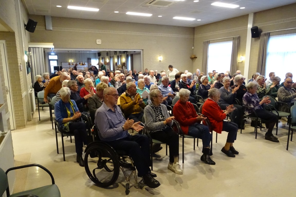 Na de vele lachsalvo’s en uitbundig applaus werd de vergadering vervolgd met een aantal mededelingen door de plv voorzitter en met de bestuurswijzigingen.