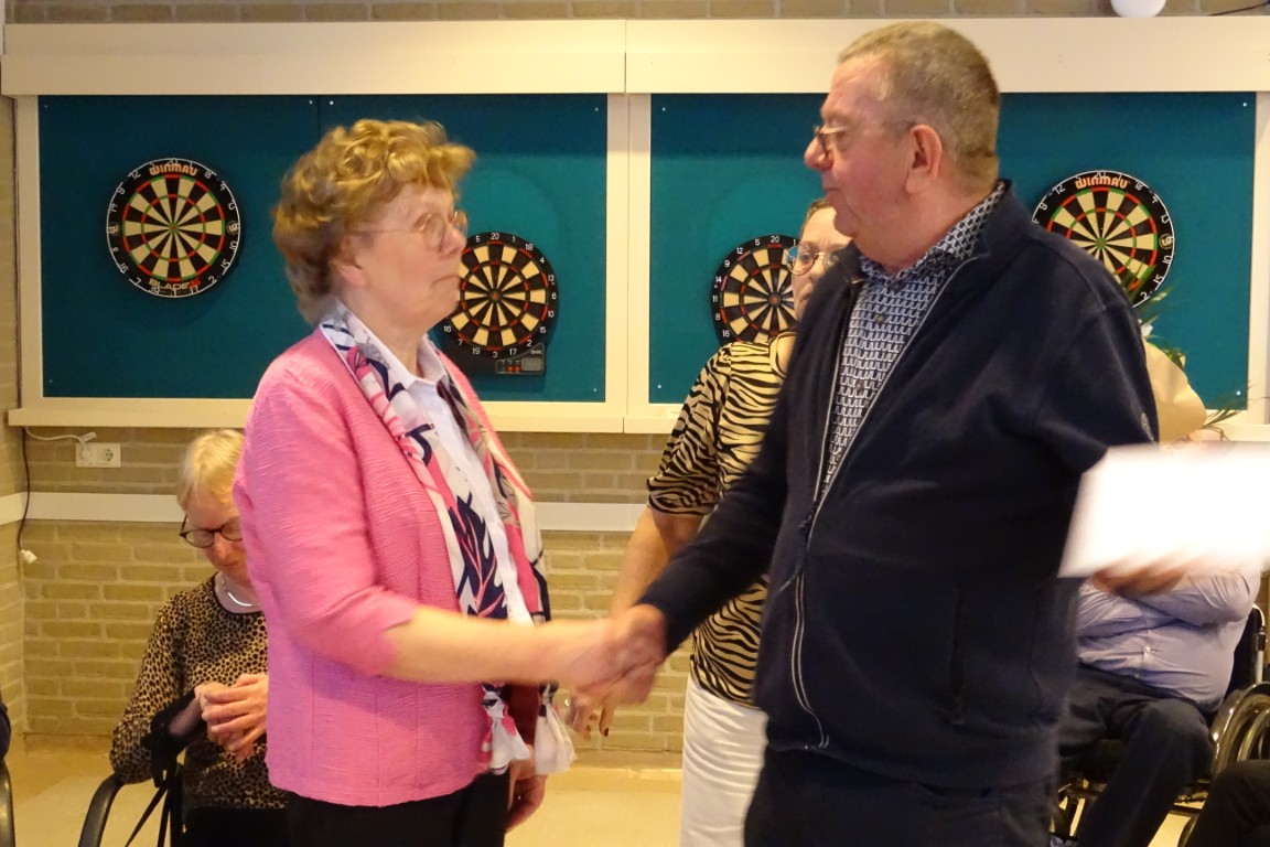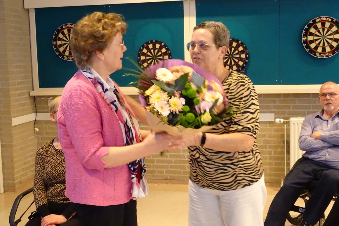 Na de rondvraag werd er met een dankwoord en een presentje afscheid genomen van het aftredende bestuurslid Annie van Gompel.