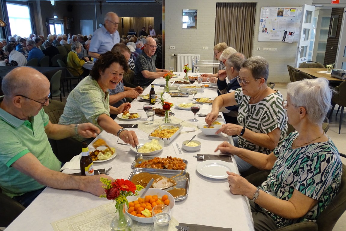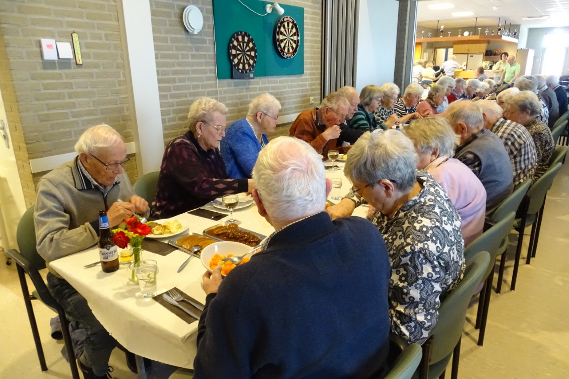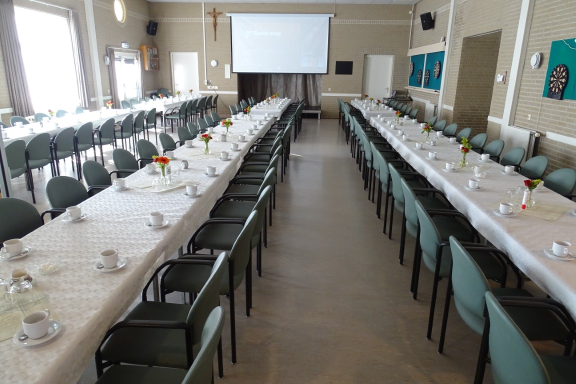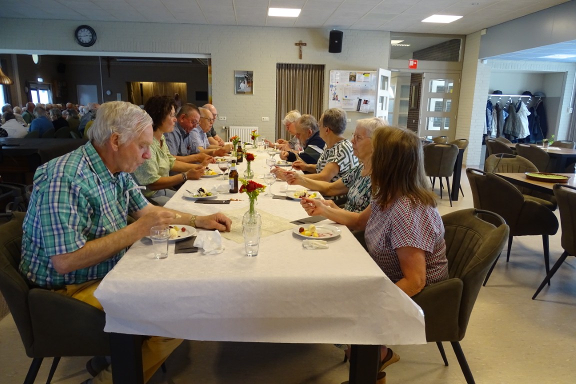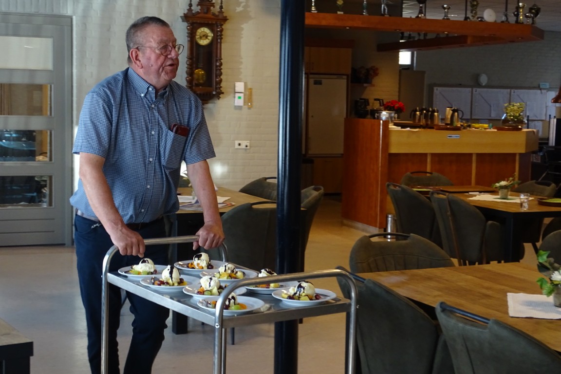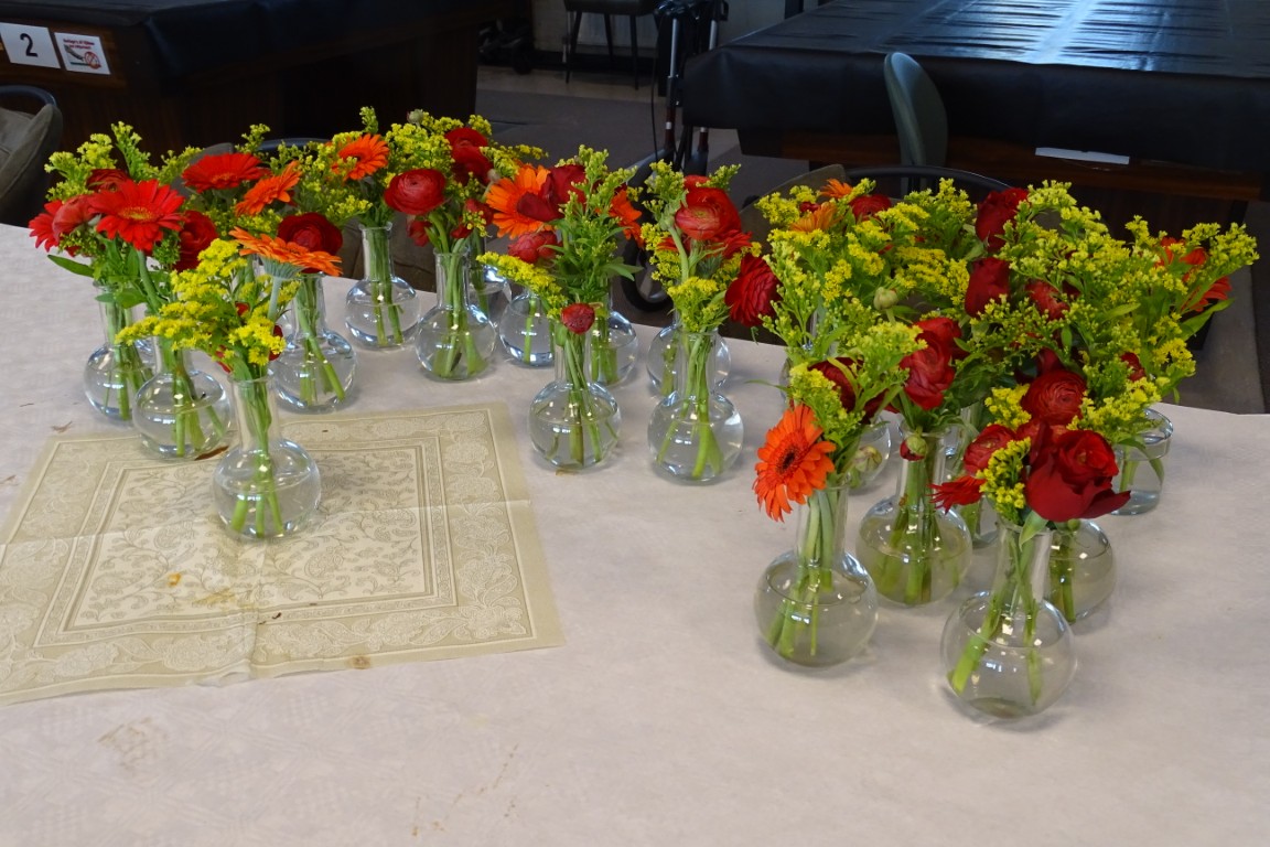 De tafels stonden weer netjes opgesteld en aangekleed met leuke bloemetjes, geschonken door bloemisterij v.d. Voort.