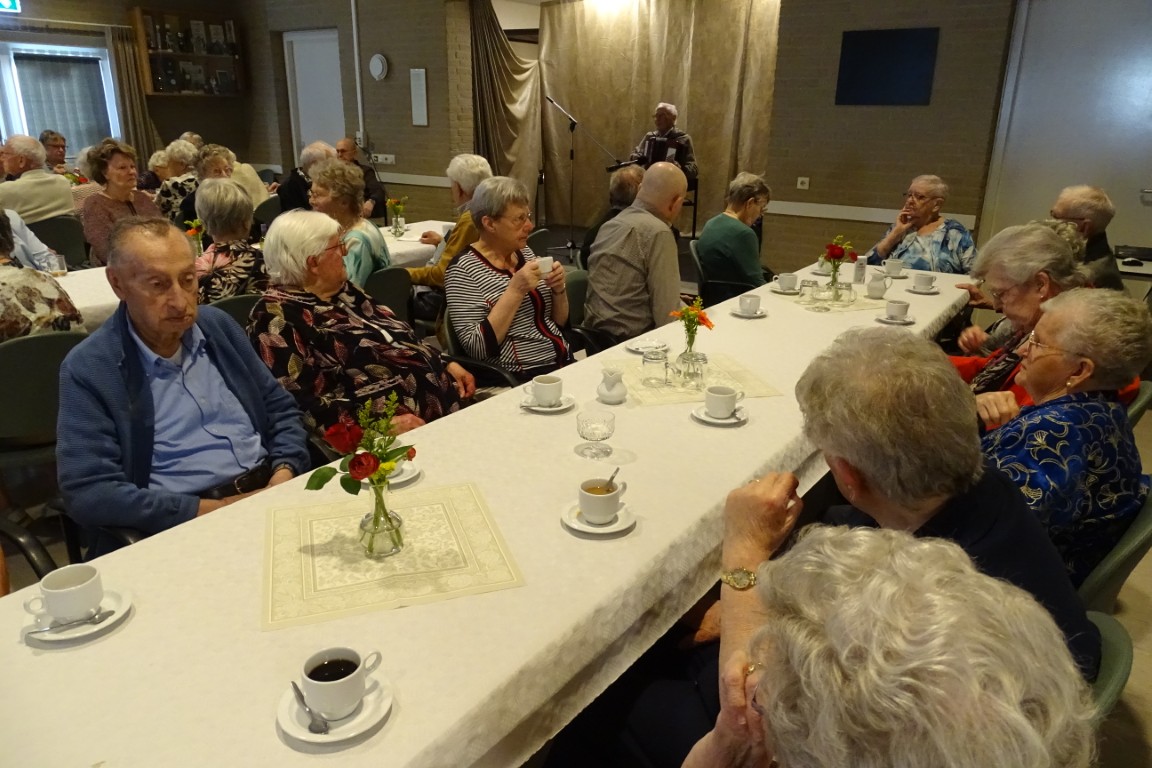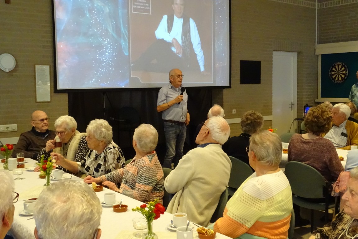 Na een welkomst woord door de voorzitter Arnold Hilhorst volgde, onder het genot van een kop koffie met gebak, een drankje en diverse lekkernijen, een programma vol met entertainment, zang en muzikale begeleiding.