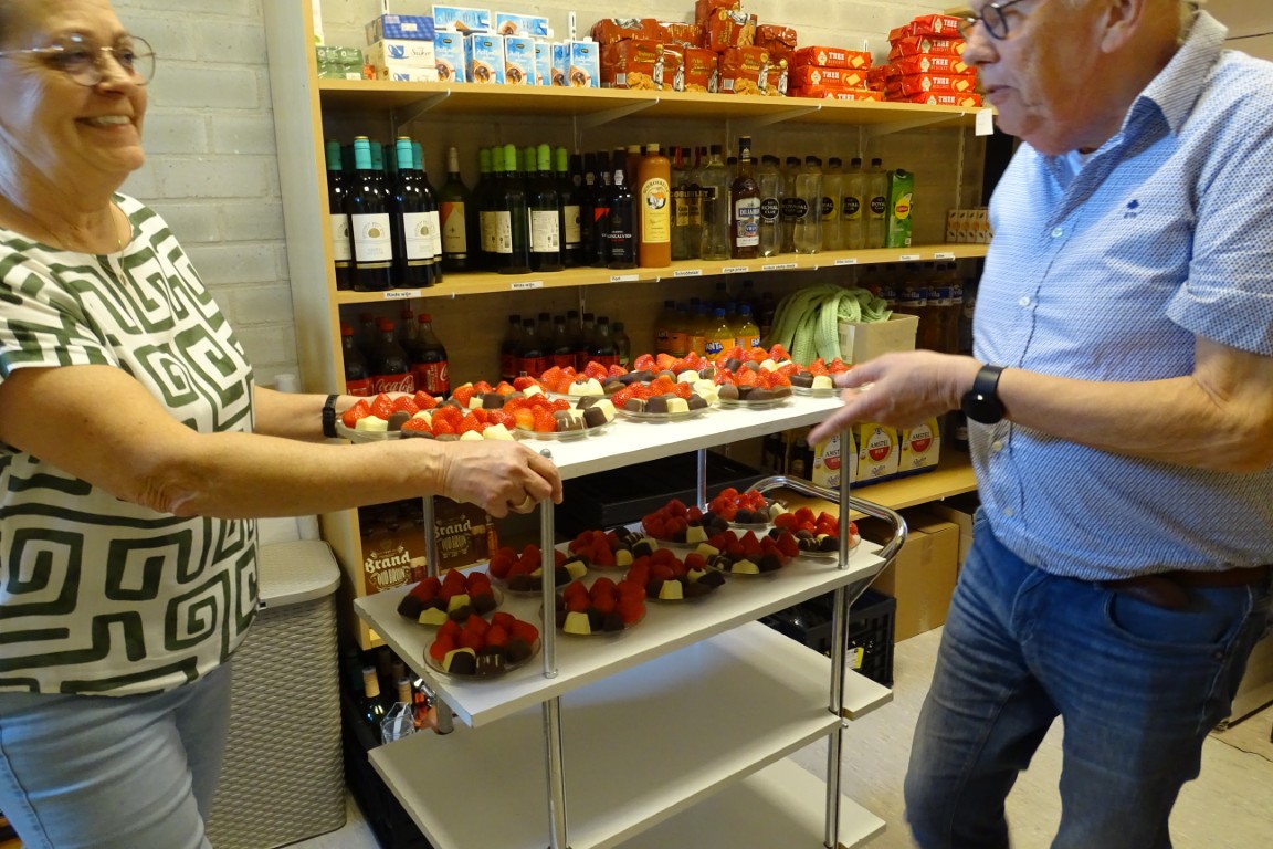 Dit alles onder het genot van een drankje en lekkere versnaperingen zoals bonbons en heerlijke verse aardbeien die geschonken waren door fa Lavrijsen uit de Leijenstraat.
