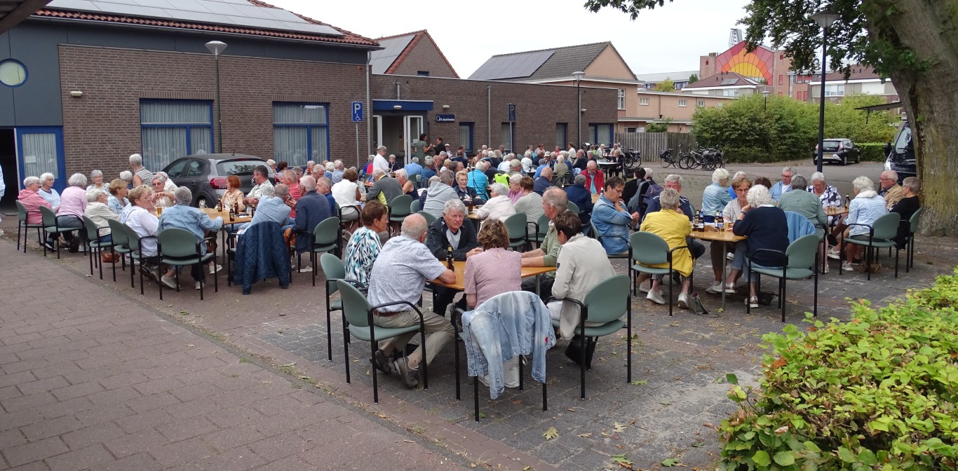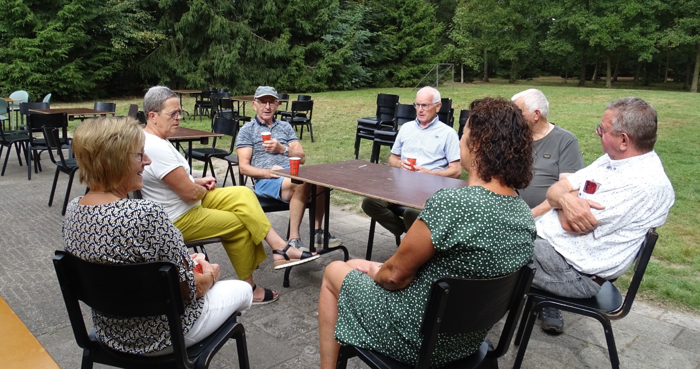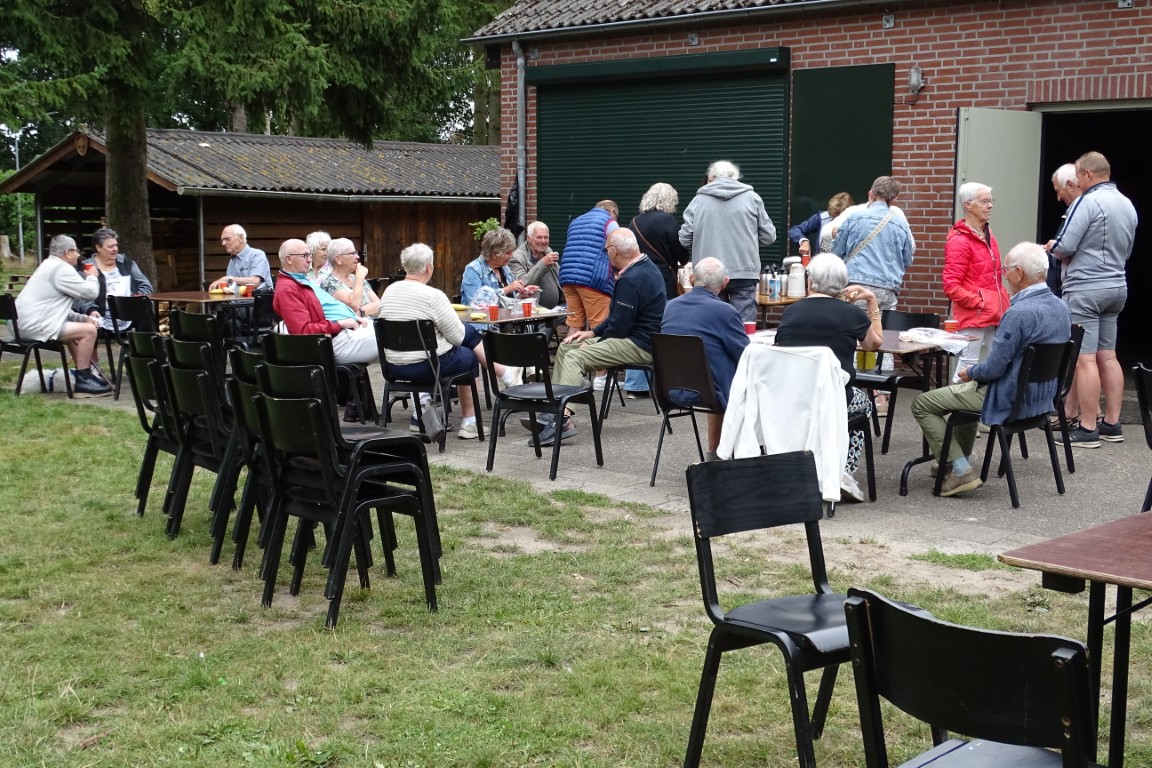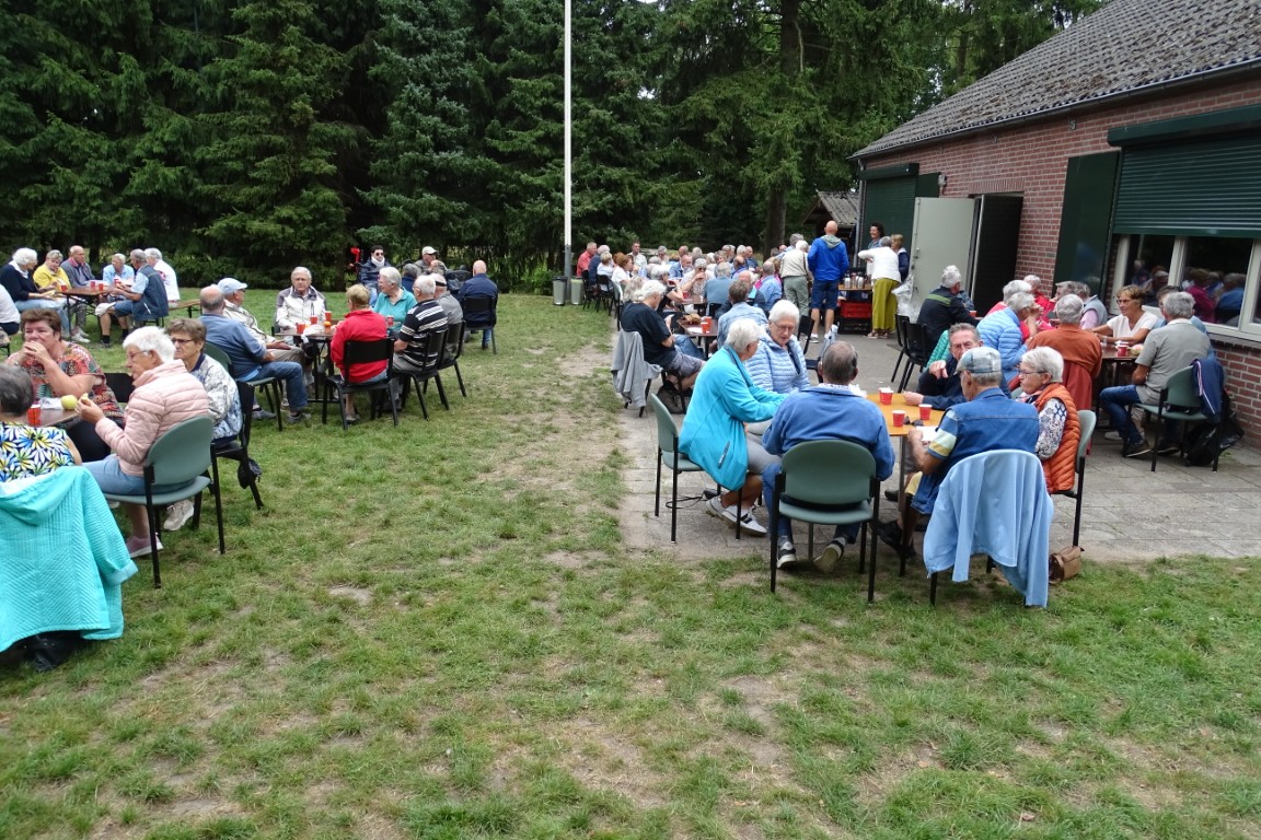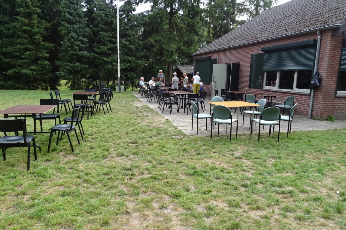 Er bleven ook ca 16 leden achter in D’n Aachterûm om gezellig te kletsen en/of te kaarten en om daar te genieten van de gezelligheid, een picknick en de friteskar.