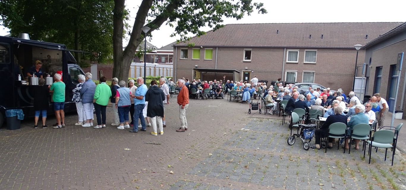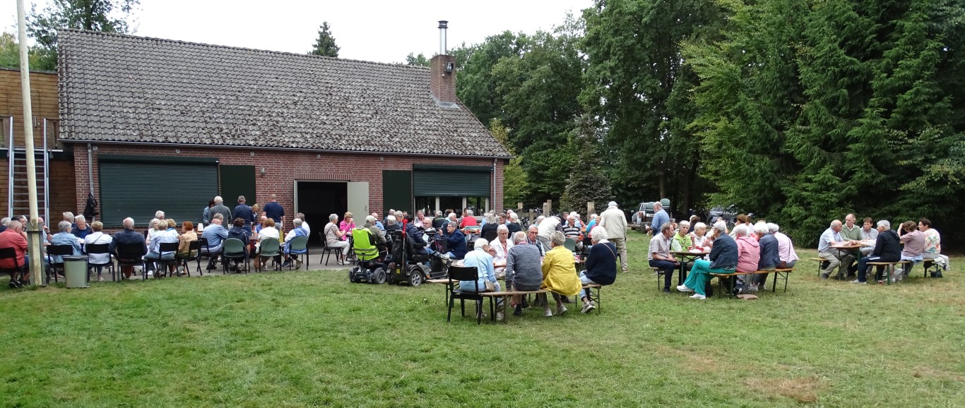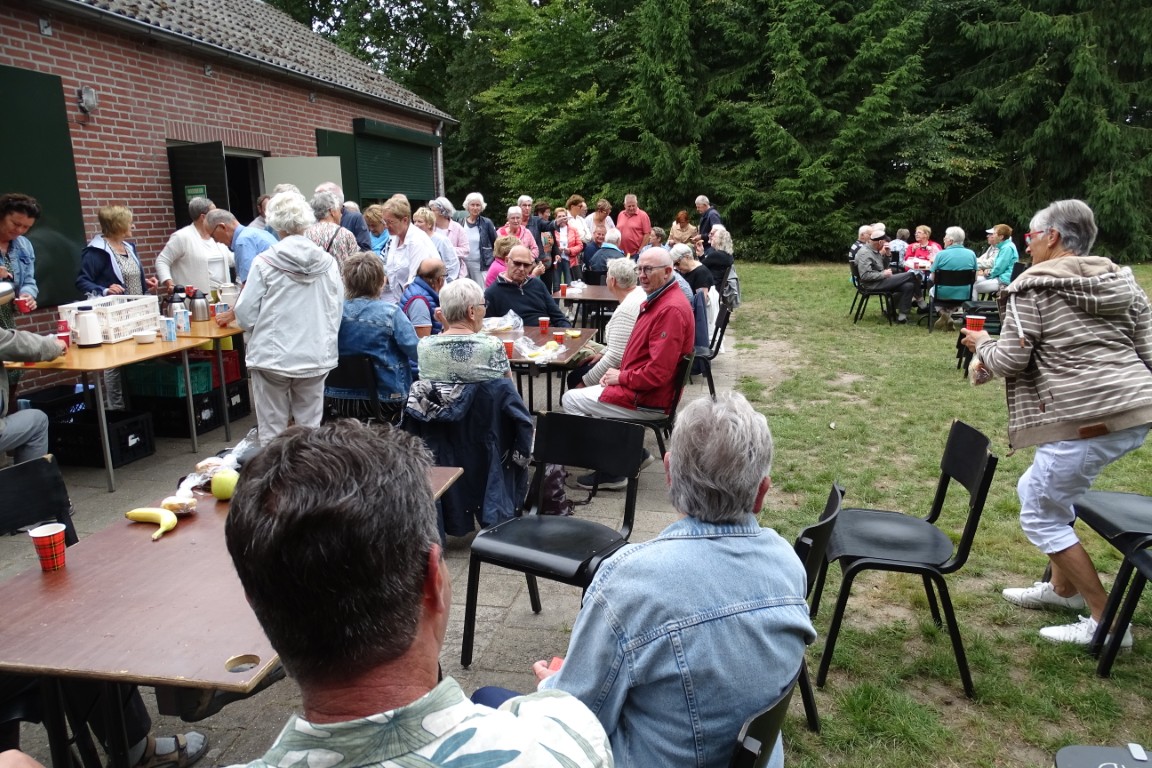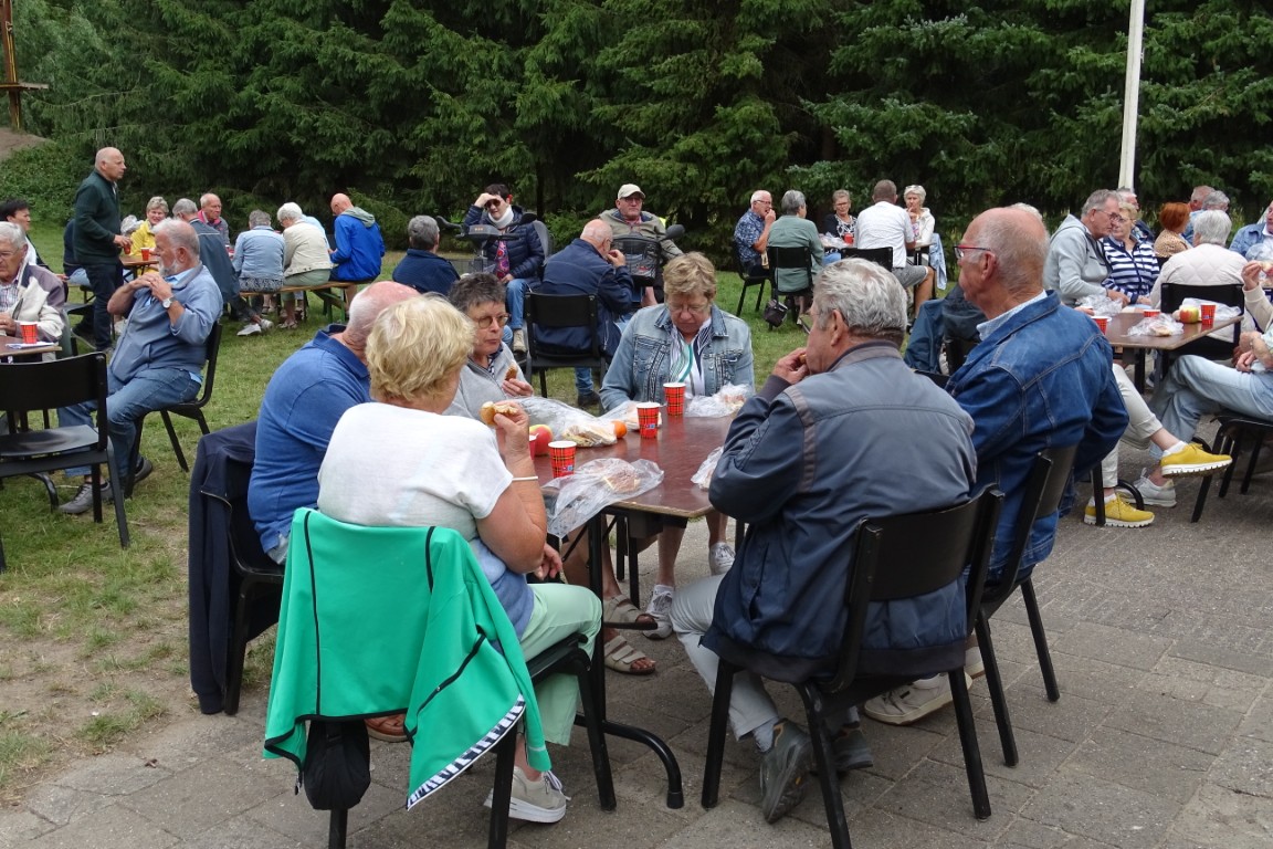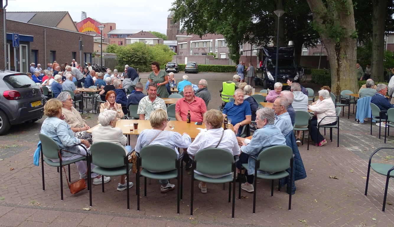 Er bleven ook ca 16 leden achter in D’n Aachterûm om gezellig te kletsen en/of te kaarten en om daar te genieten van de gezelligheid, een picknick en de friteskar.