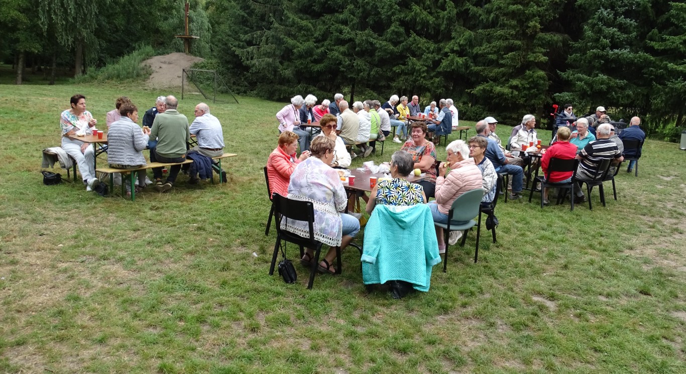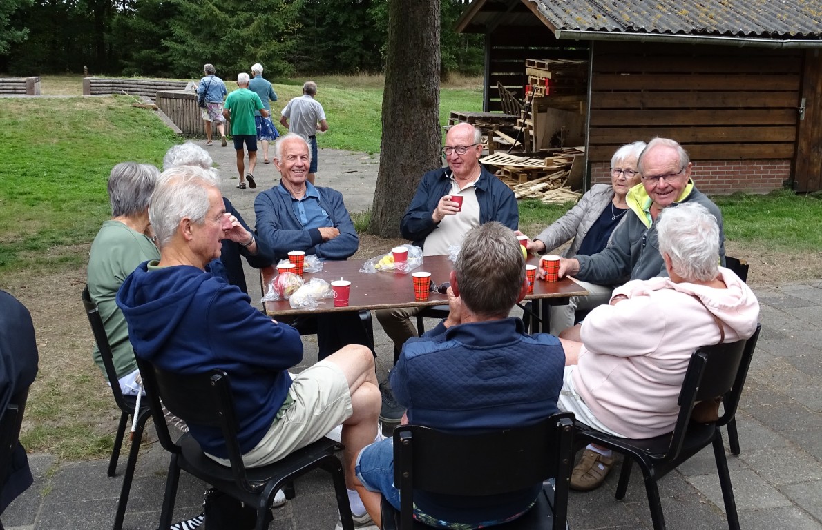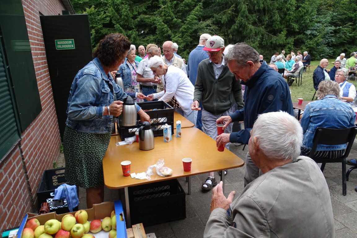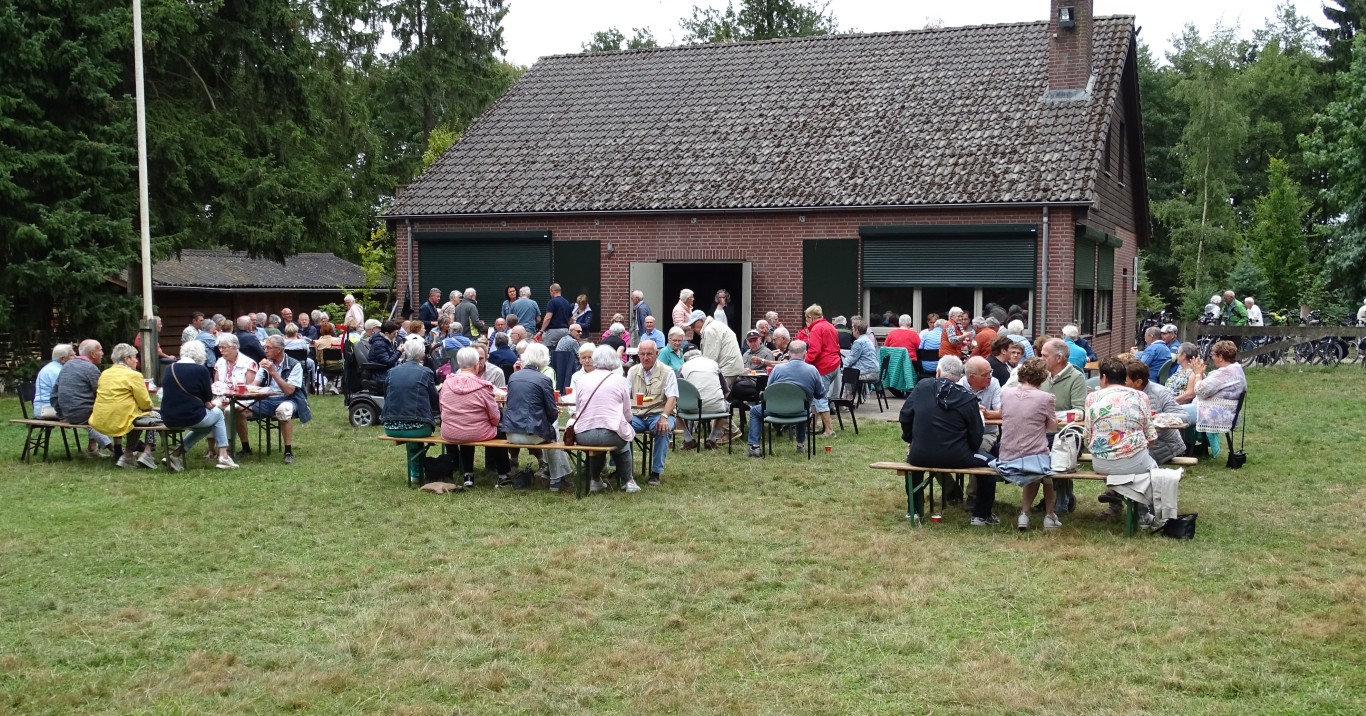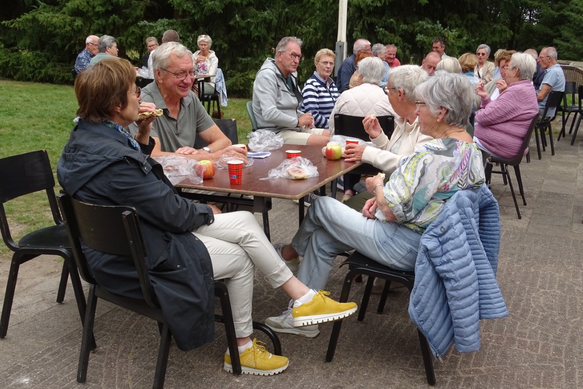 Er bleven ook ca 16 leden achter in D’n Aachterûm om gezellig te kletsen en/of te kaarten en om daar te genieten van de gezelligheid, een picknick en de friteskar.