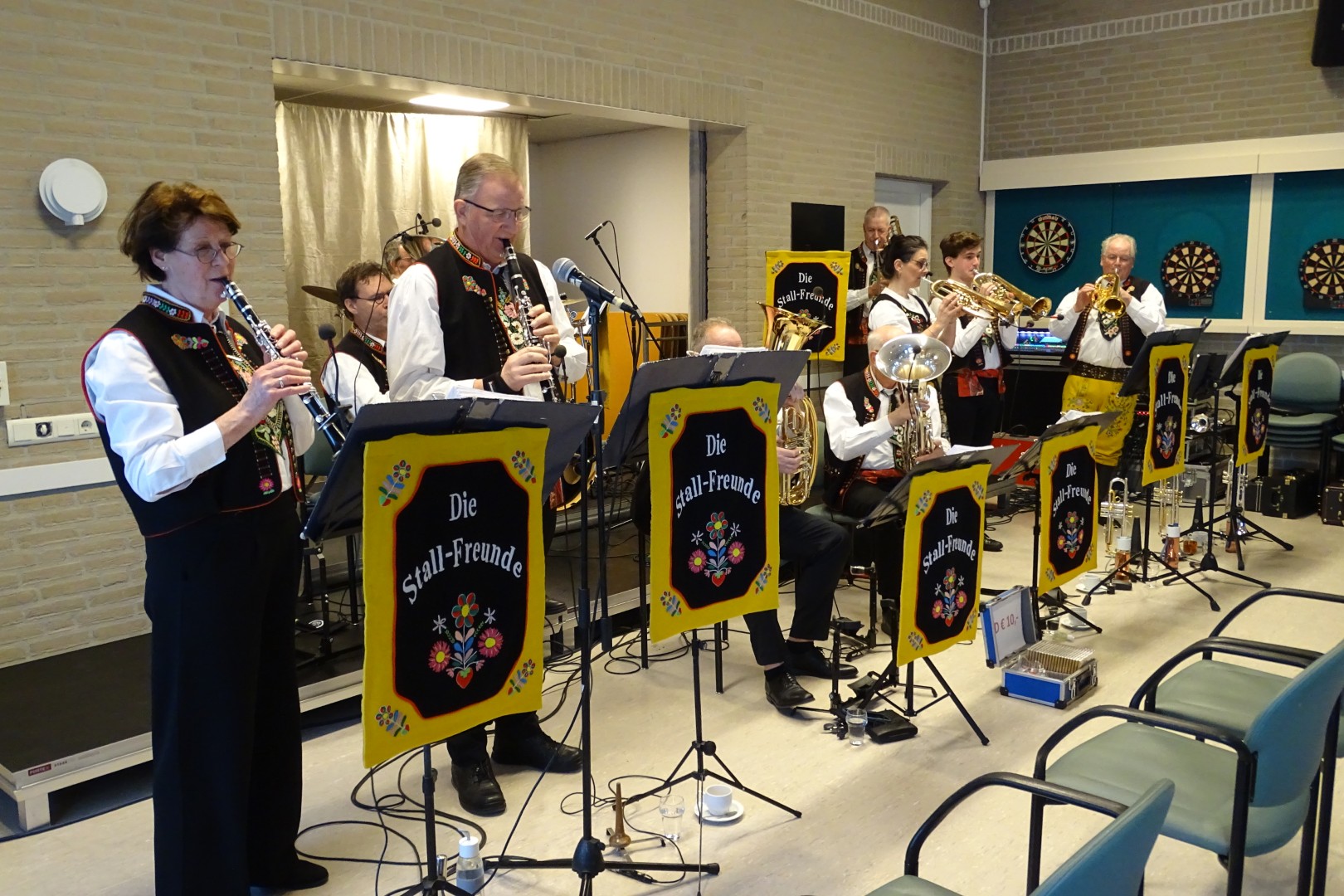 Blaaskapel “Die Stall-Freunde” werd opgericht in 1989 te Wintelre en speelt voornamelijk Tsjechische blaasmuziek, afgewisseld met populaire muziekstukken. Dit optreden was dan ook zeer gevarieerd.
