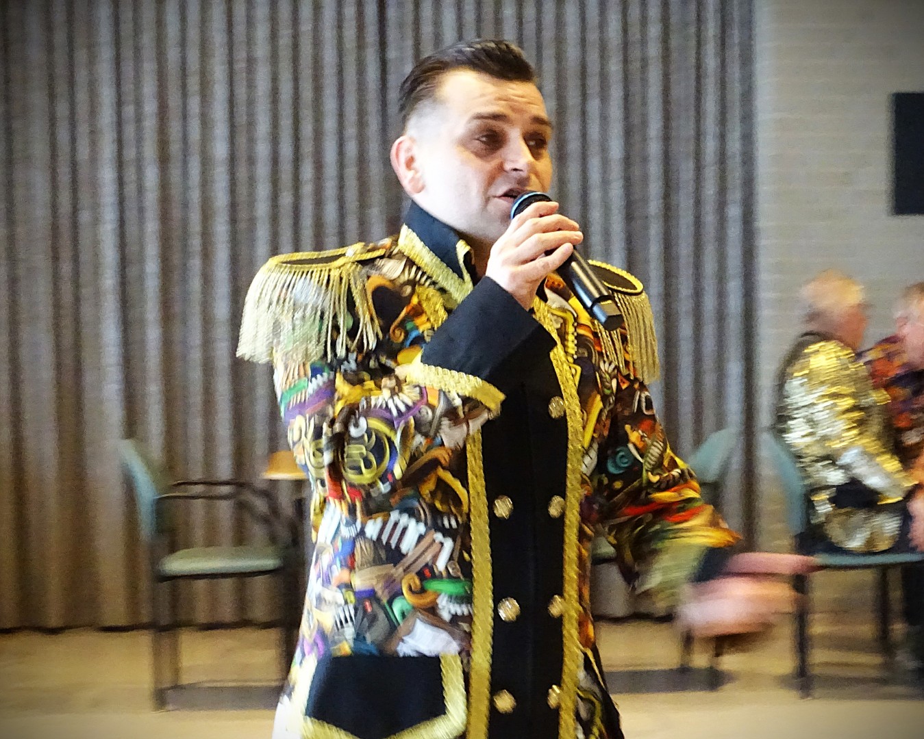 Deze middag werd op een zeer enthousiaste en fantastische wijze muzikaal verzorgd door de bekende entertainer Dennis Smits (Reuselnaar van geboorte) die werd bijgestaan door de bevriende zangers Jan v Gestel, Ray en zangeres Dilona zodat ze een zeer gevarieerd repertoire ten gehore brachten.