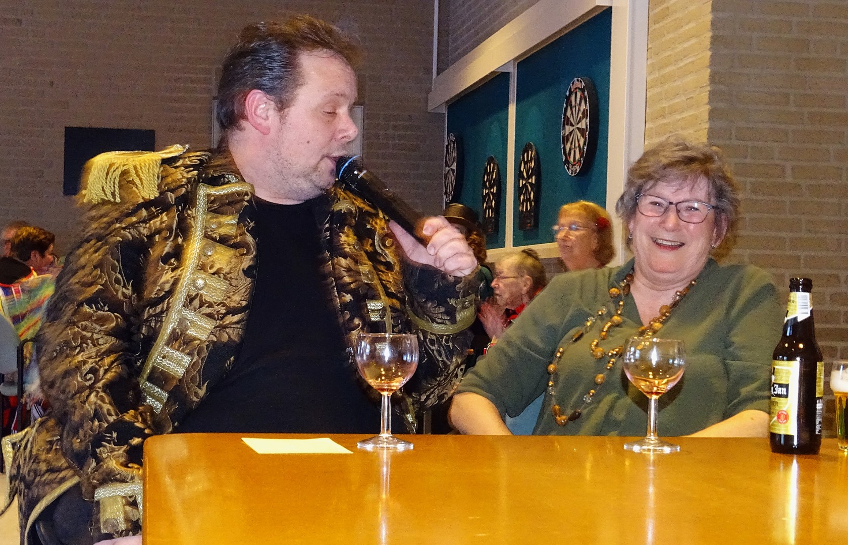 Zij zongen beurtelings, spontaan, zeer enthousiast en vakkundig diverse nummers uit hun repertoire.